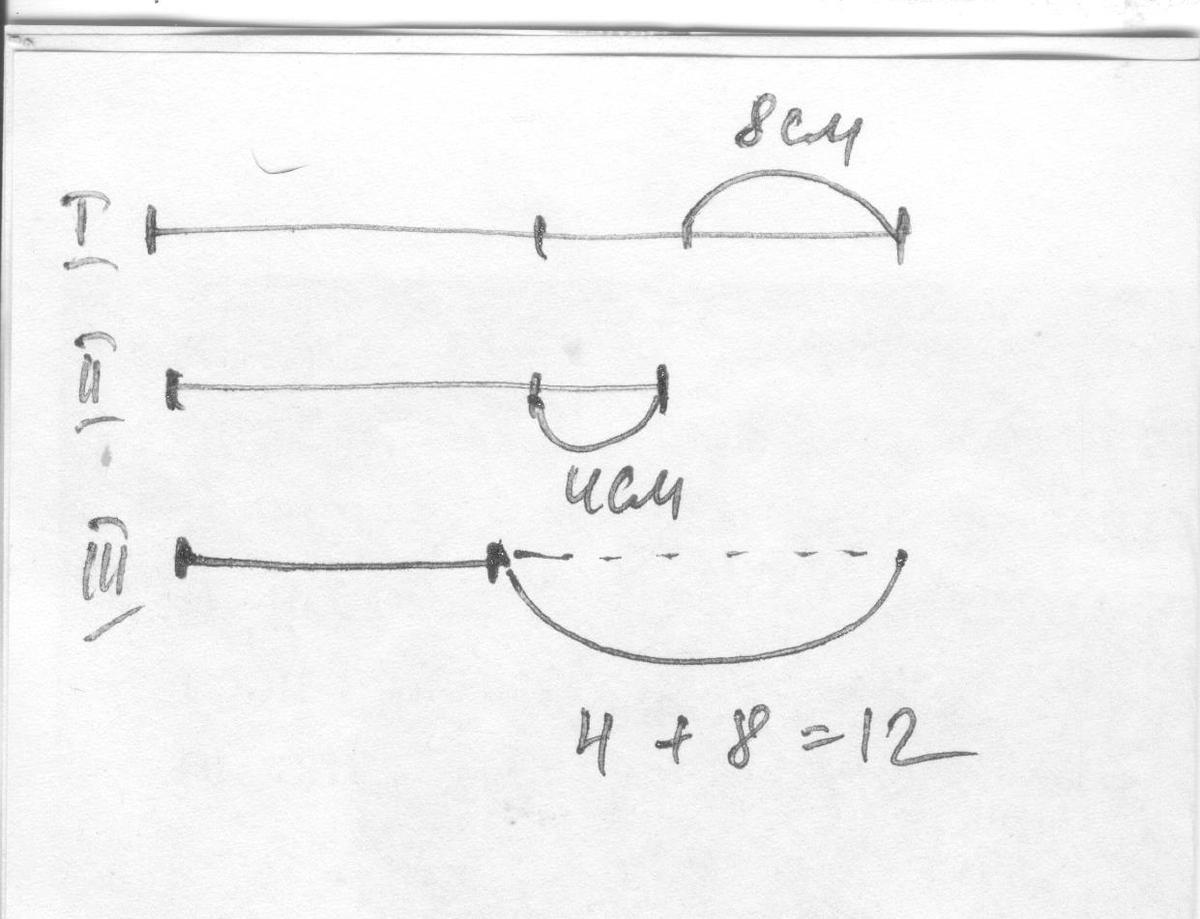 первый отрезок на 8 см длиннее второго,а третий на 4 см короче второго.на сколько см первый отрезок длиннее первого?