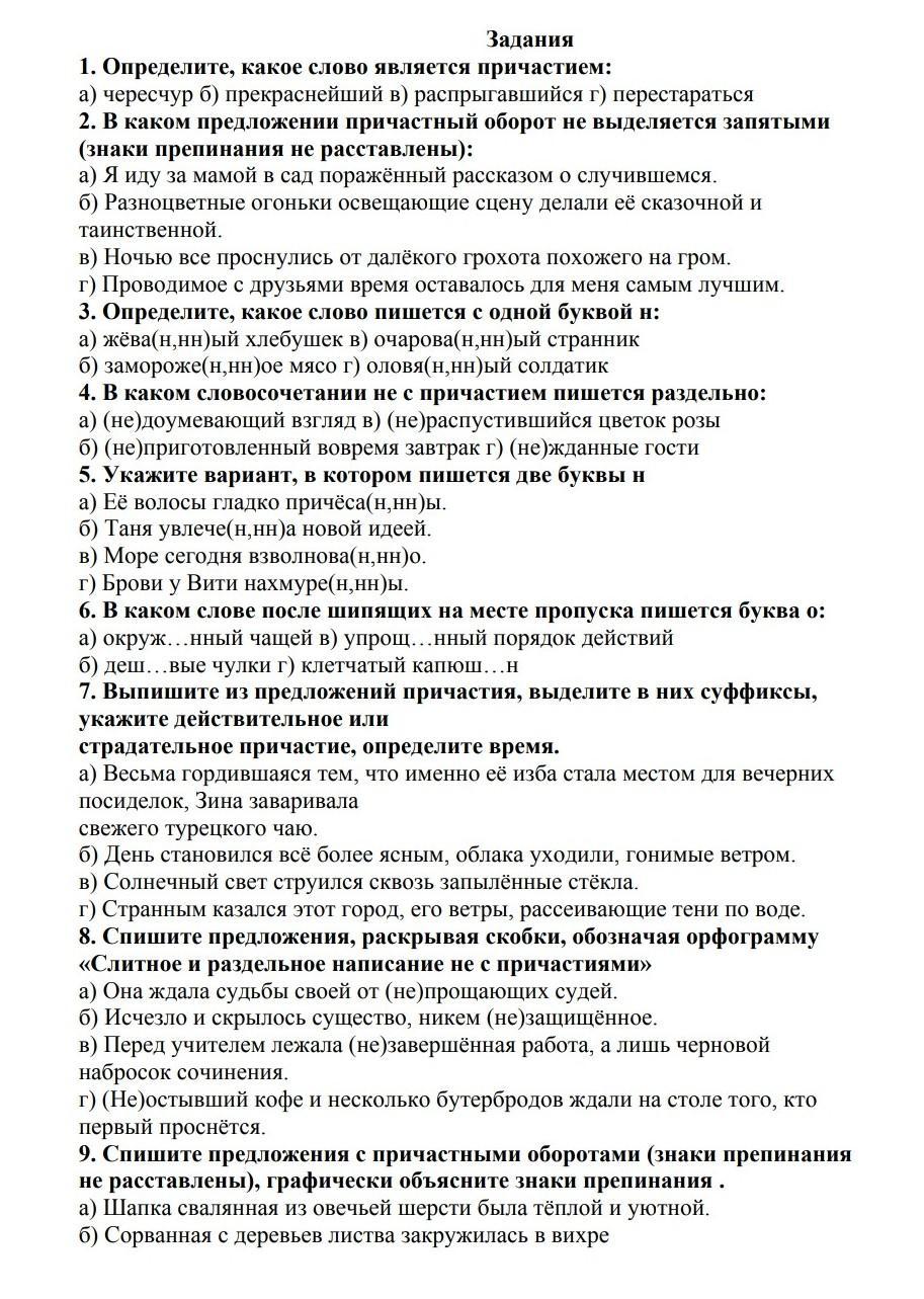 7. Гордившаяся — суффикс -вш, действительное причастие. Гонимые — суффикс -им, страдательное причастие. Запылённые — суффикс -ённ, страдательное причастие. Рассевающие — суффикс -ющ, действительное причастие.