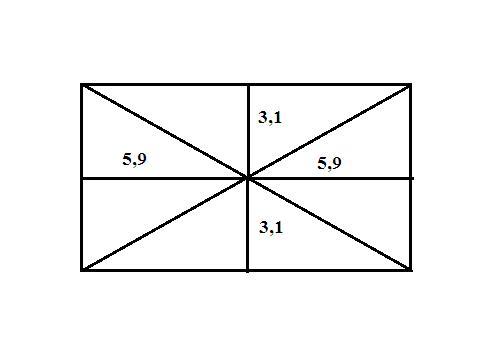 Точка пересечения диагоналей прямоугольника лежит на серединных перпендикулярах сторон прямоугольника. Следовательно длины сторон прямоугольника равны - 5,9*2=11,8 см и 3,1*2=6,2 см.