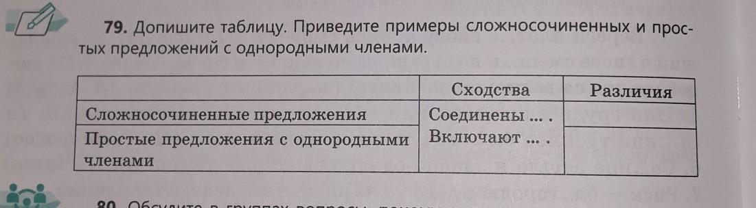 79. Допишите таблицу. Приведите примеры сложносочиненных и прос-