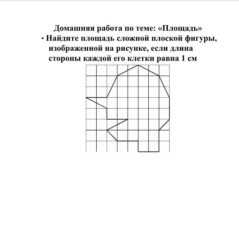 Считаешь сначала полные клетки, затем складываешь кусочки, образуя полную клетку, это видно невооружённым глазом, и общее количество всех целых клеток- это площадь
