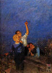 1)два мальчика 2)на лицах мальчиков восторг3) их внимание привлекло падающая звезда или новое созвездие!