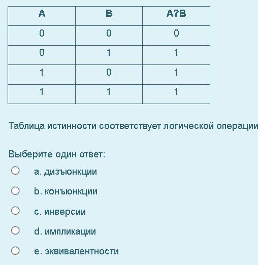При дизъюнкции для истинности всего высказывания необходимо, чтобы хоть один элемент имел значение истина.
