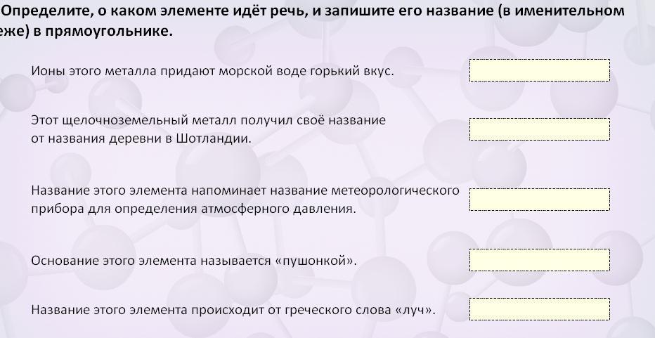 определите о каком элементе идет речь и запишите его название в имен падеже