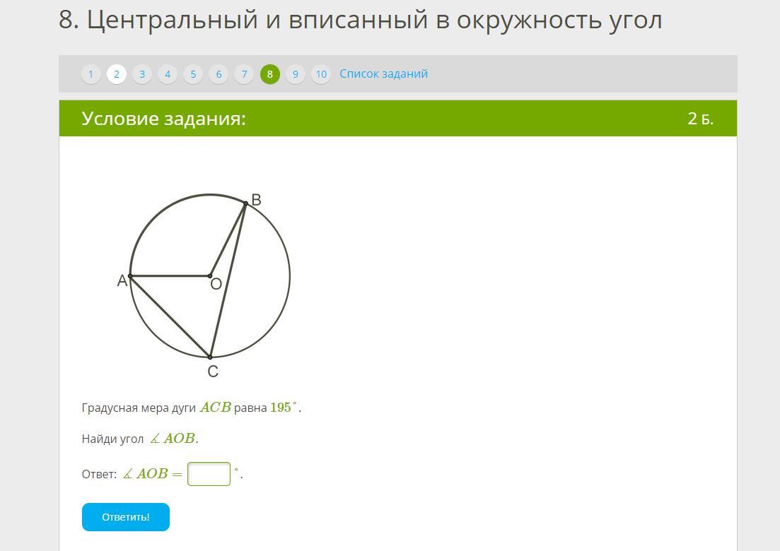 ∠ACB=(360-дуга ACB):2=(360-267):2=46,5 градусов