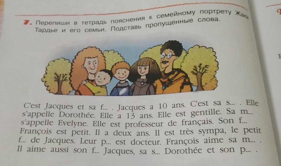 перепиши в тетрадь пояснение к семейному портрету Жака тардье и его семьи.подставь пропущенные слова