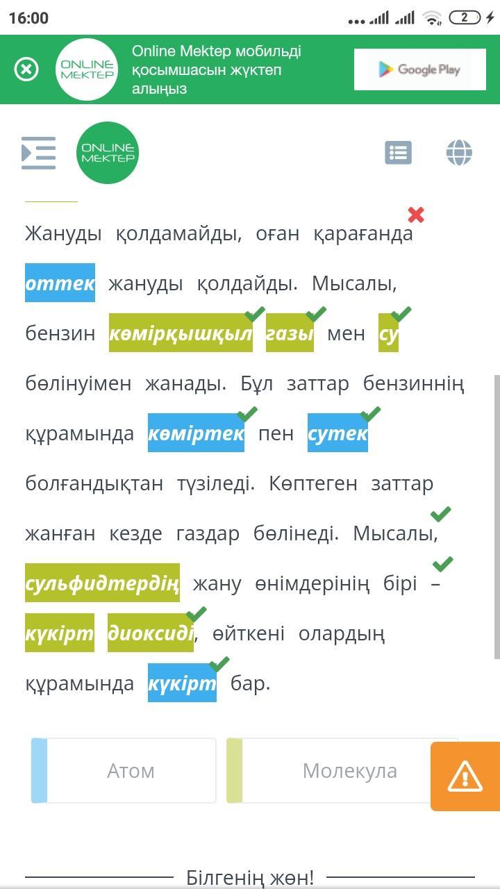 Крч атом молекула болады яғни жасыл туспен жазасындар