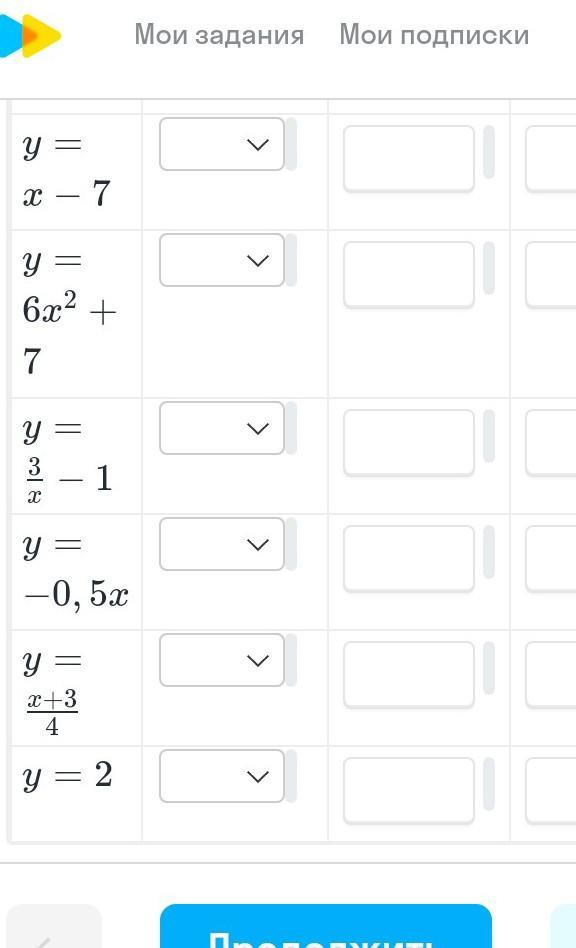 Определи является ли функция линейной. если да ,то замши коэффициенты k и b .если нет,то поставь ,,-,,