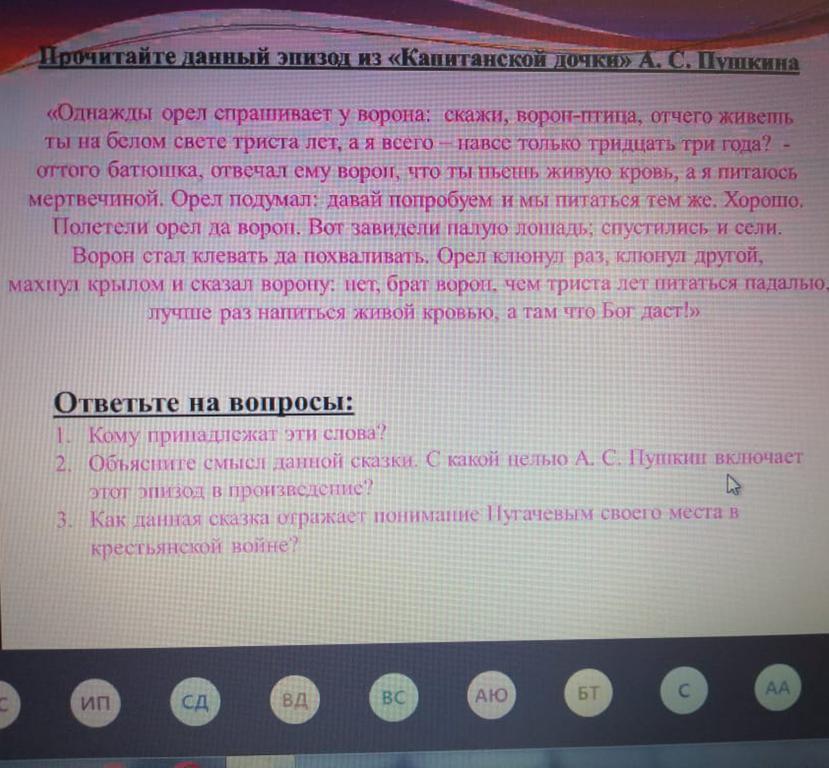 2.Калмыцкая сказка про орла и ворона говорит о том, что лучше прожить короткую и яркую жизнь, чем длинную и скучную. Рассказывая эту сказку, Пугачев ассоциирует себя с орлом, но для Гринева в данном случае нет разницы между орлом и вороном, т.к. в его понимании убивать - это питаться мертвечиной.