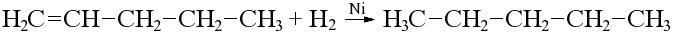 При повному гідруванні пент-1-ену утворюється пентан. (див. мал.).