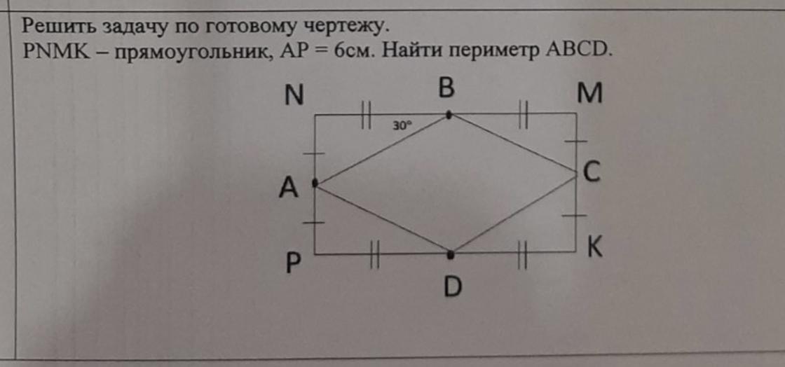 AP = AN по условию, так как PNMK - прямоугольник, то угол ANB = 90 градусов.
