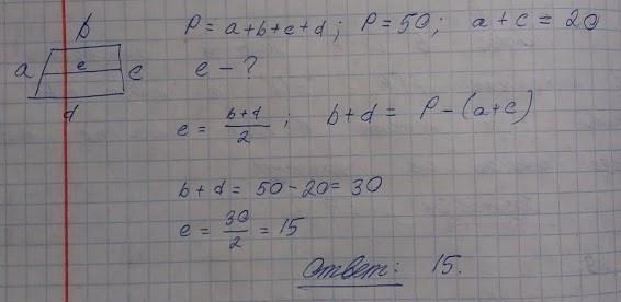периметр трапеции равен 50 см а сумма непаралелльных сторон равна 20 см найдите среднюю лирию трапеции