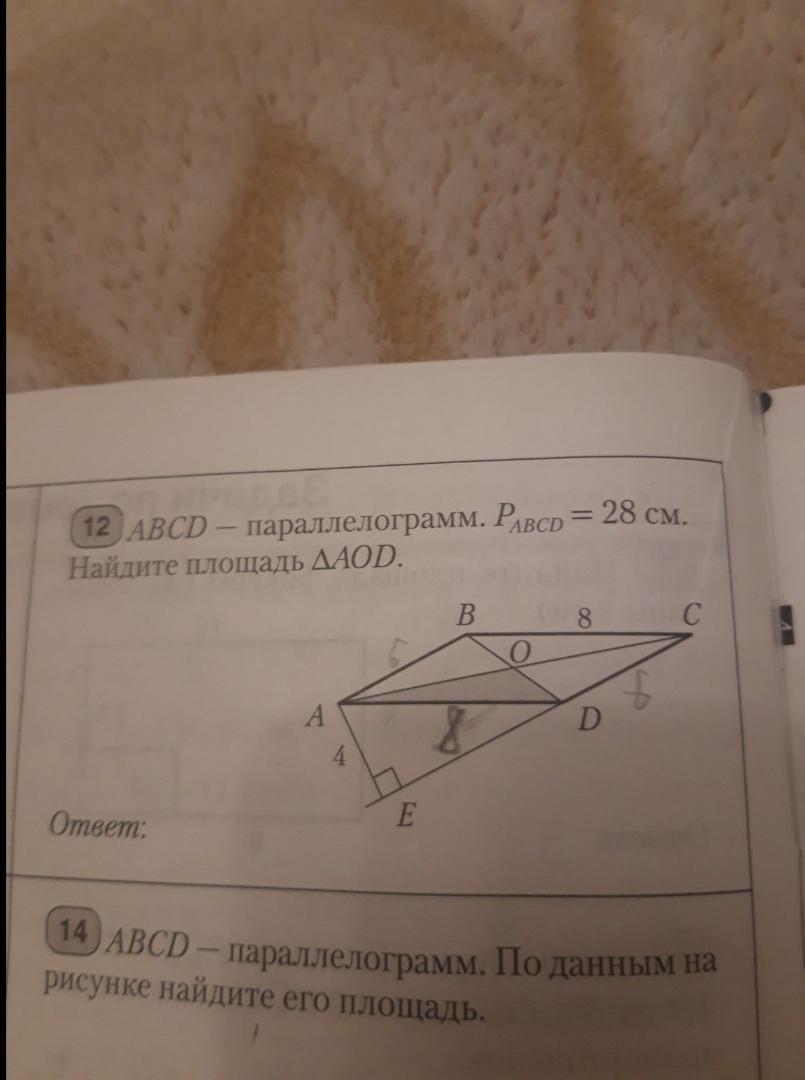 АЕ высота параллелограмма к основанию 6, значит площадь параллелограмма = 24