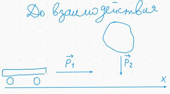 Закон: геометрическая сумма импульсов до взаимодействия равна геометрической сумме импульсов после взаимодействия.