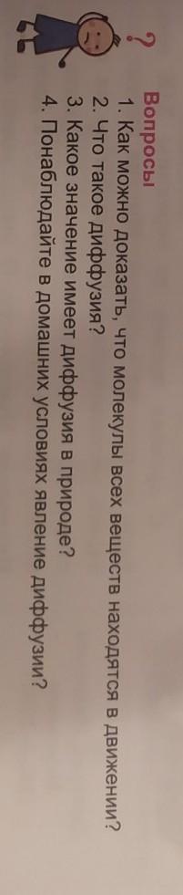 Объяснение:1. Например, если внести в комнату духи, то вскоре запах будет чувствоваться по всей комнате. Распространение запахов происходит из-за того, что молекулы движутся.С