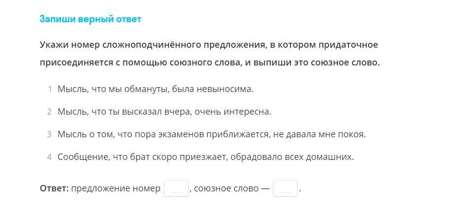4) сообщение, что брат скоро приезжает, обрадовало всех домашних при этом союзное слово - что