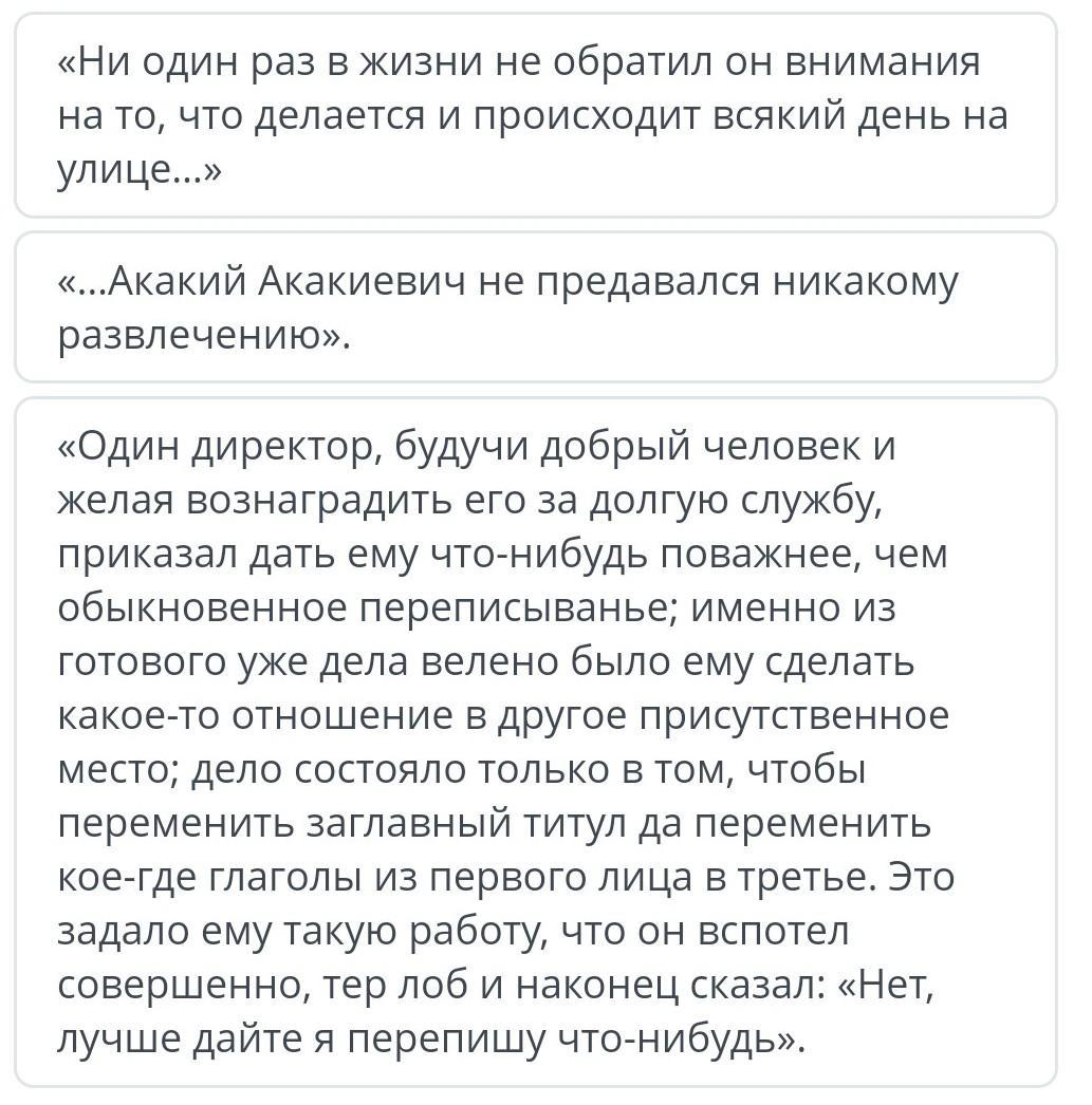 Соотнеси цитату с характерной чертой образа Башмачкина – внешний мир в сознании персонажа.