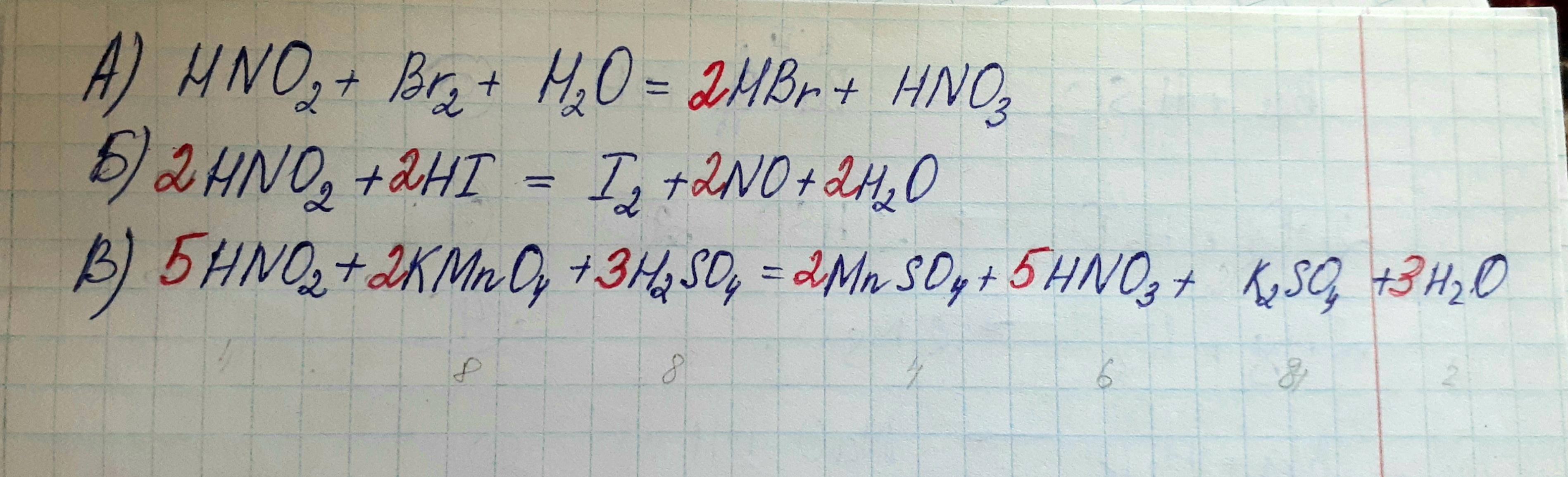 а)HNO2 + Br2 + H2O = HBr + HNO3