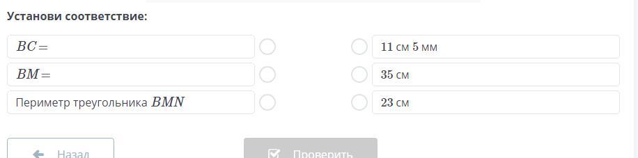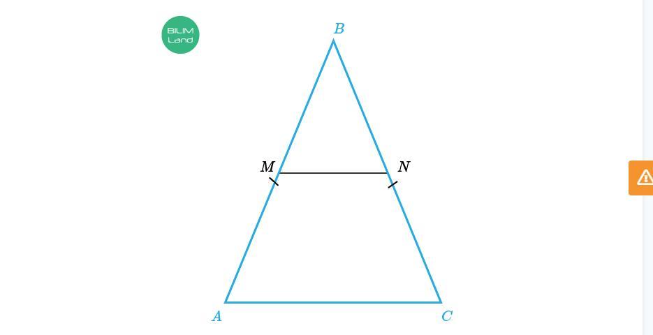 В равнобедренном треугольнике ABC длина боковой стороны равна 23 см, а средней линии MN – 12 см.