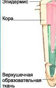 Кожица – первичная покровная ткань, покрывающая молодые стебли этого года. Со временем кожица замещается пробкой – вторичной покровной тканью, которая состоит из мертвых клеток и воздуха и образуется за счет деления клеток пробкового камбия (феллогена). Кожица и пробка выполняют защитную функцию.Корка – третичная покровная ткань (корковый дуб). Состоит из чередующихся слоев пробки и других отмерших тканей растения.Луб – внутренний слой коры. Состоит из ситовидных трубок, лубяных волокон, клеток основной ткани.Ситовидная трубка – вертикальный ряд вытянутых клеток, у которых поперечные стенки пронизаны отверстиями. Это проводящая ткань Древесина – основная часть древесного ствола. Состоит из клеток проводящей ткани (сосуды), механической ткани (волокна), основной ткани.Годичное кольцо прироста – все слои клеток древесины, образовавшиеся весной, летом и осенью данного года. Осенние клетки мельче весенних, поэтому для деревьев умеренных широт отчетливо видна граница между 2 годичными кольцами. Сердцевина