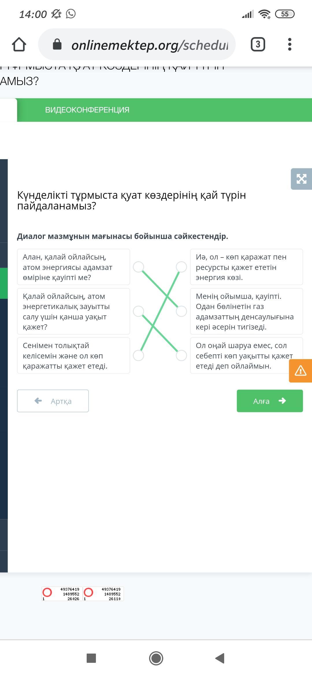 Диалог мазмұнын мағынасы бойынша сәйкестендір,