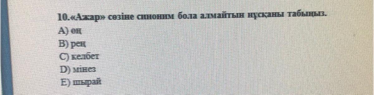 Ажар сөзіне синоним бола алмайтын нұсқаны табыңыз.