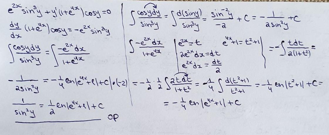 E^2x sin^3 y+y` (1+e^4x) cos y=0