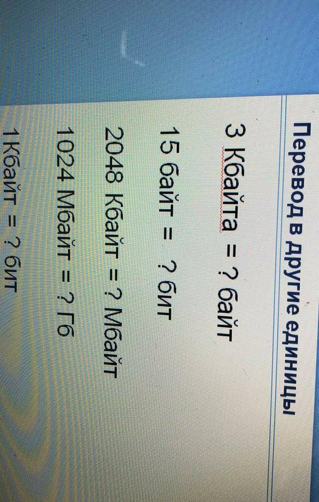 3 Кбайта = 3 * 1024 байт = 3072 байт