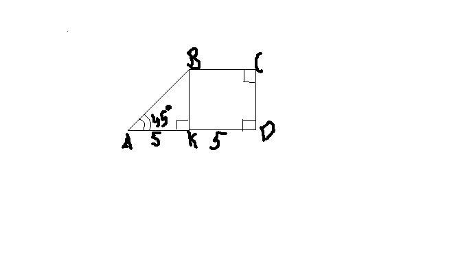 так как угол 45, то это прямоуг равнобедр треугольник. следовательно высота равна 5