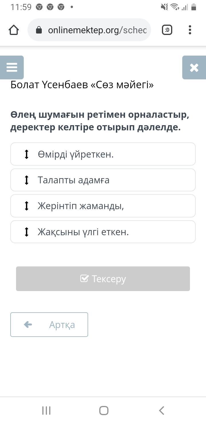 Өлең шумағын ретімен орналастыр, деректер келтіре отырып дәлелде.пожалуйста сразу ответьте