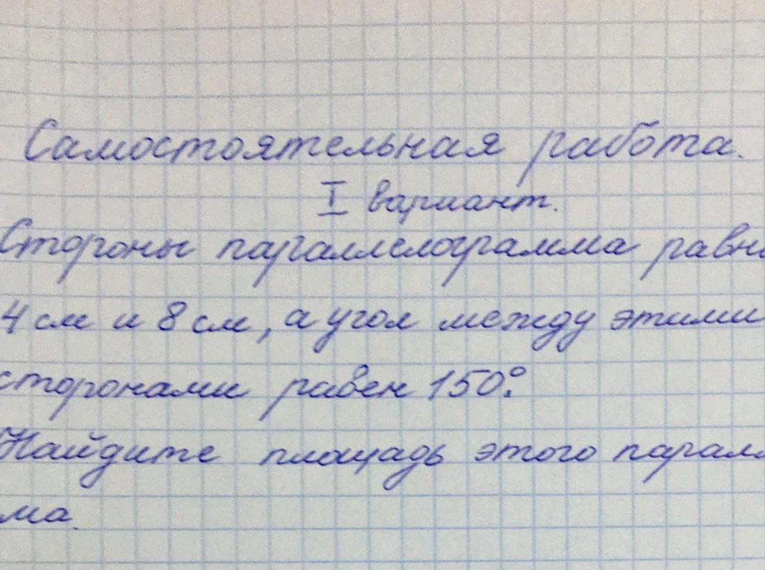 S=4*8*sin150=32 * 1/2 = 16 см²