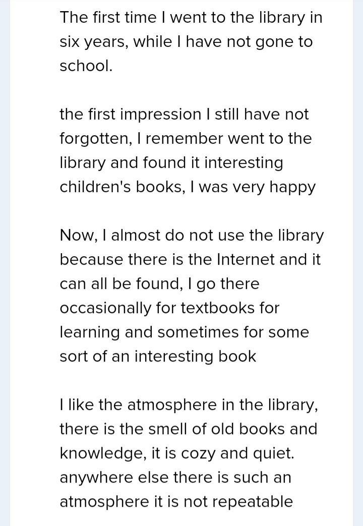 2) Do you like the atmosphere of the library? Why or why not?