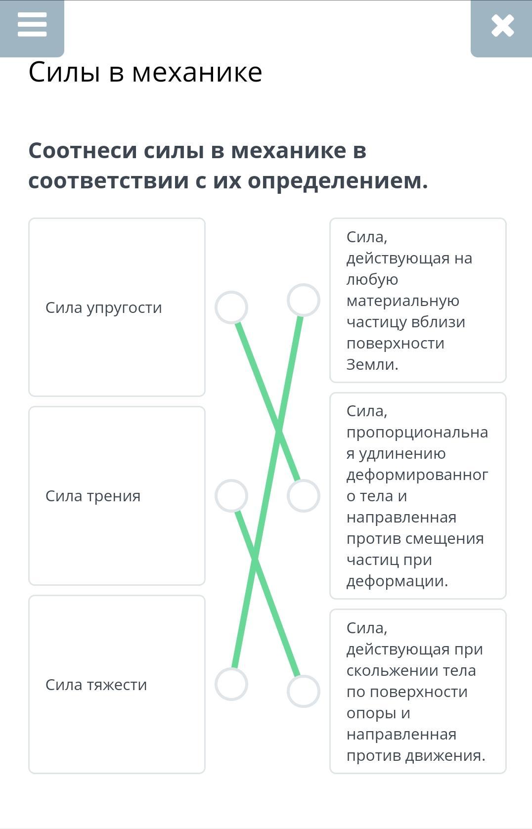 Соотнеси силы в механике в соответствии с их определением.