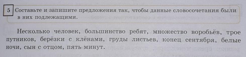 5 Составьте и запишите предложения так,чтобы данные словосочетания были в них подлежащими