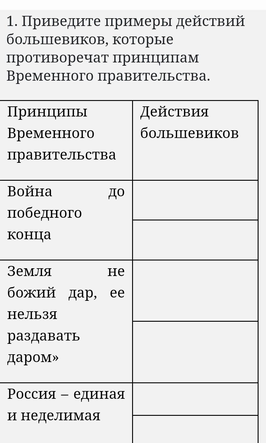 Приведите примеры действий большевиков, которые противоречат принципам Временного правительства.