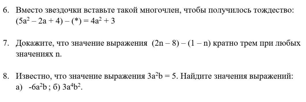 2. (2n-8)-(1-n)= 2n-8-1+n=3n-9 выражение кратно трем так как может сократится даже при любых значениях n
