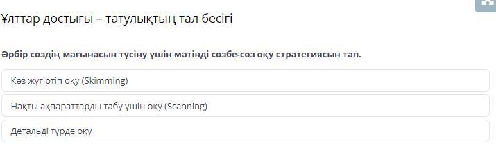 Әрбір сөздің мағынасын түсіну үшін мәтінді сөзбе-сөз оқу стратегиясын тап.