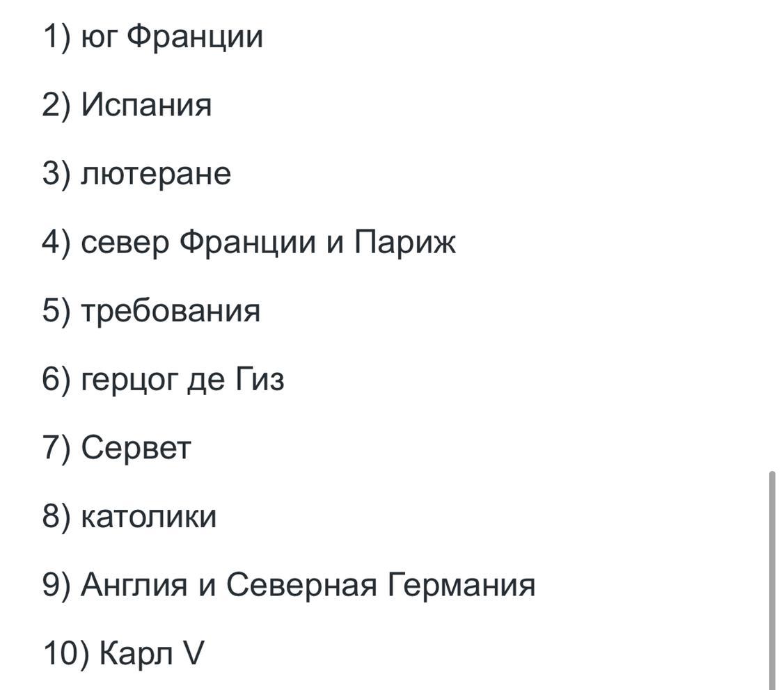 Руководители: Сервет(Д); адмирал Колиньи, король Наваррский Генрих Бурбон
