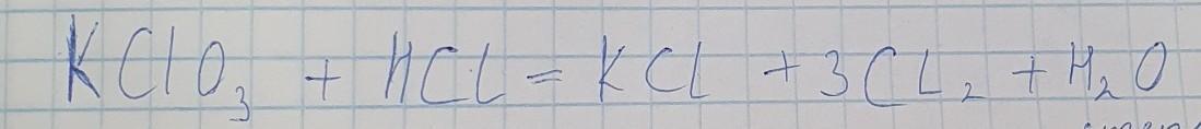 K^(+)Cl^(+5)O3^(-2)+6H^(+)Cl^(-)⇒3Cl2^(0)+K^(+)Cl^(-)+H2^(+)O^(-2)