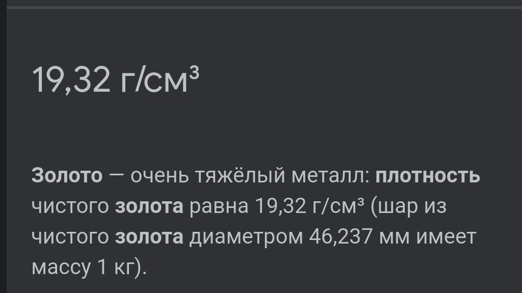 У золота плотность 19,32 г/см^3, а в ходе вычисления (461,5/65) у нас получилось 7,1 г/см^3.