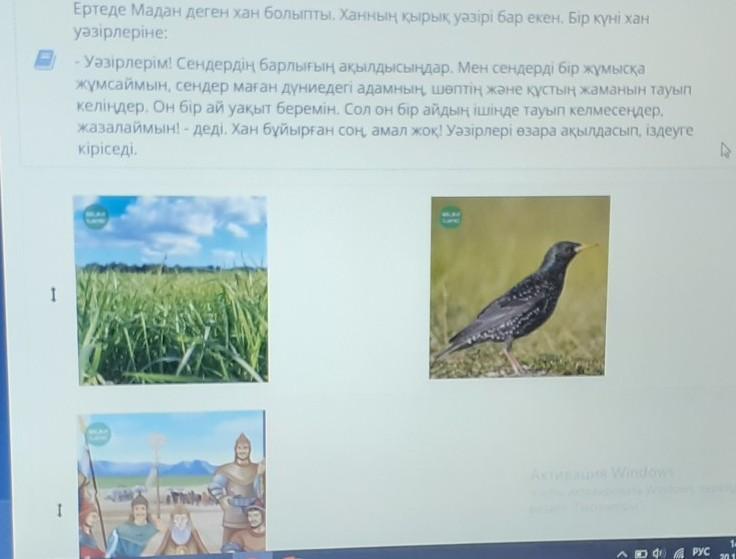 1-хан сидит с придворными 2- трава,птица3- войска пошли