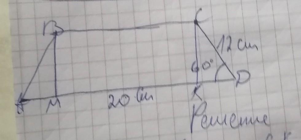 Побудуємо височину ВМ (якщо трапеція рівнобічна то кут АВМ =30° (кут АВМ=кут КСД)