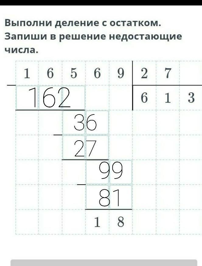 Выполни деление с остатком запиши в решении недостающие числа срочно пожалуйста умоляю два ответа нужны всего 2