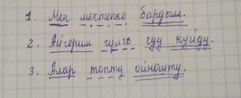 Составьте три предложения и подчеркните главные и второстепенные члены предложения.Всё писать на Кыргызском языке