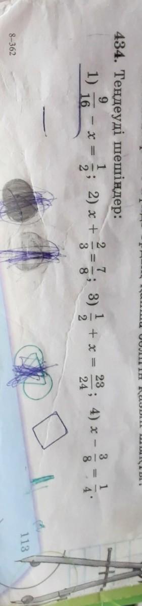 1) 9/16-х=1/2. 2) х+2/3=7/8