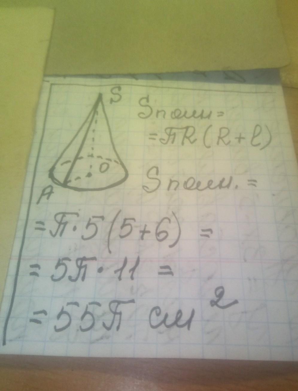 Найти площадь полной поверхности конуса, образующая которого равна 6 см, а радиус - 5 см.