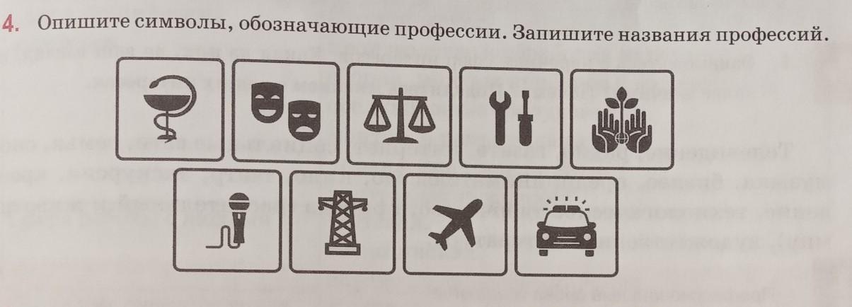 4. Опишите символы, обозначающие профессии. Запишите названия профессий.