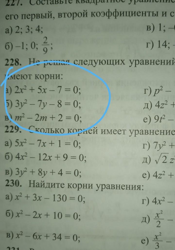 228. Не решая следующих уравнений ,установите, какие из них имеют корни: