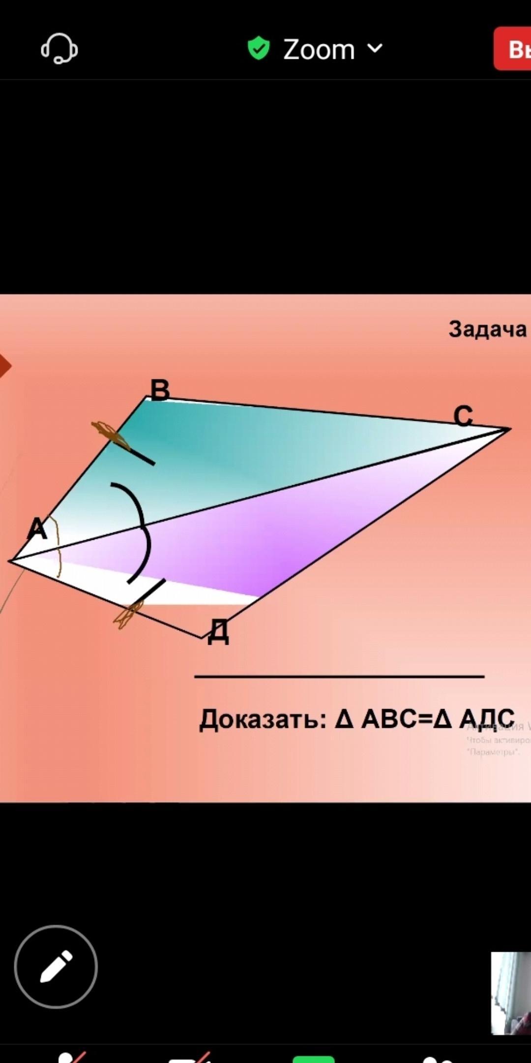 Треугольник АВС = АДС по первому признаку равенства треугольников так как по условию АВ = АД, угол САД = САВ по условию; АС - общая.
