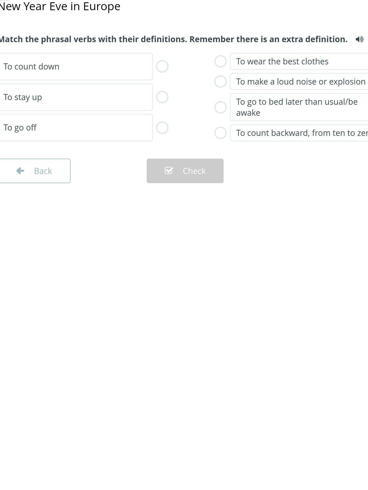 Match the phrasal verbs with their definitions. Remember there is an extra definition.
